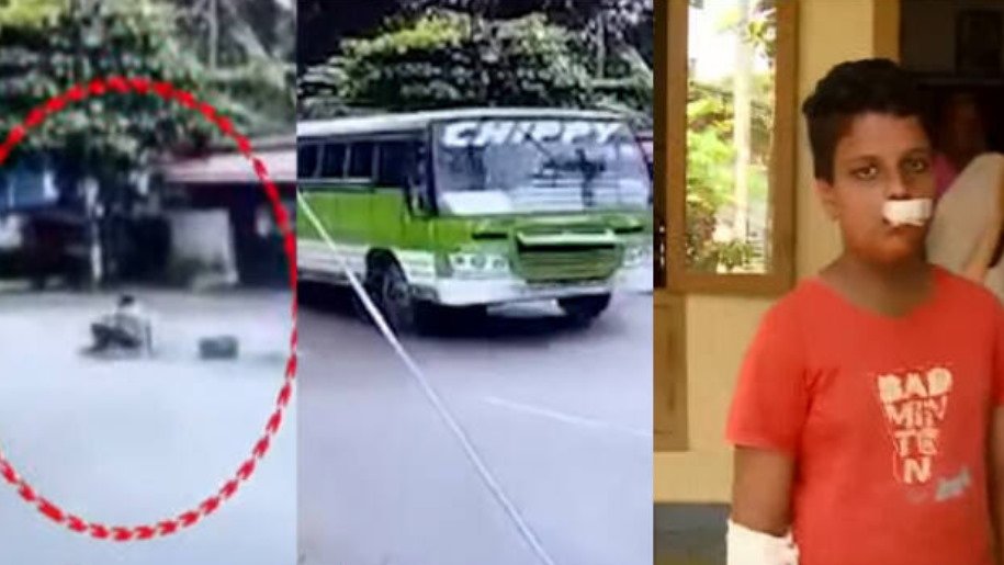 A 13-year-old child fell off from a private bus on near Chingavanam in Kottayam and suffered serious injuries on the face. Abhiram has also injured his hands and tooth was broken.