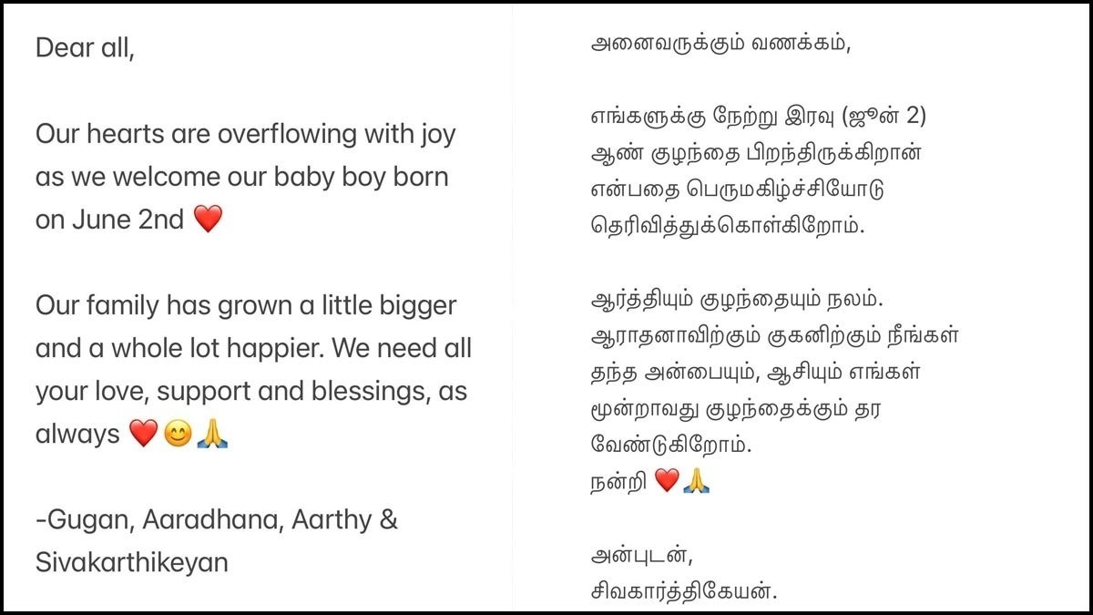 Sivakarthika himself has officially revealed this news. Sivakarthika is told that his wife has given birth to a boy again. Yesterday, i.e. on 2nd of June, a boy was born to both of them. The actor informed his fans through his official social media accounts. Many fans are now coming forward to wish him.