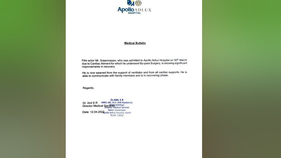 Sreenivasan suffered a cardiac arrest on March 30, and he was rushed to a private hospital where he underwent a Bypass surgery.