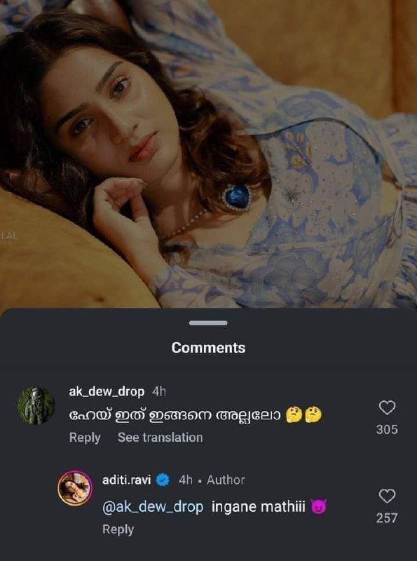Actress Aditi Ravi was chased by a fan with a double meaning comment under the photo shoot pictures.