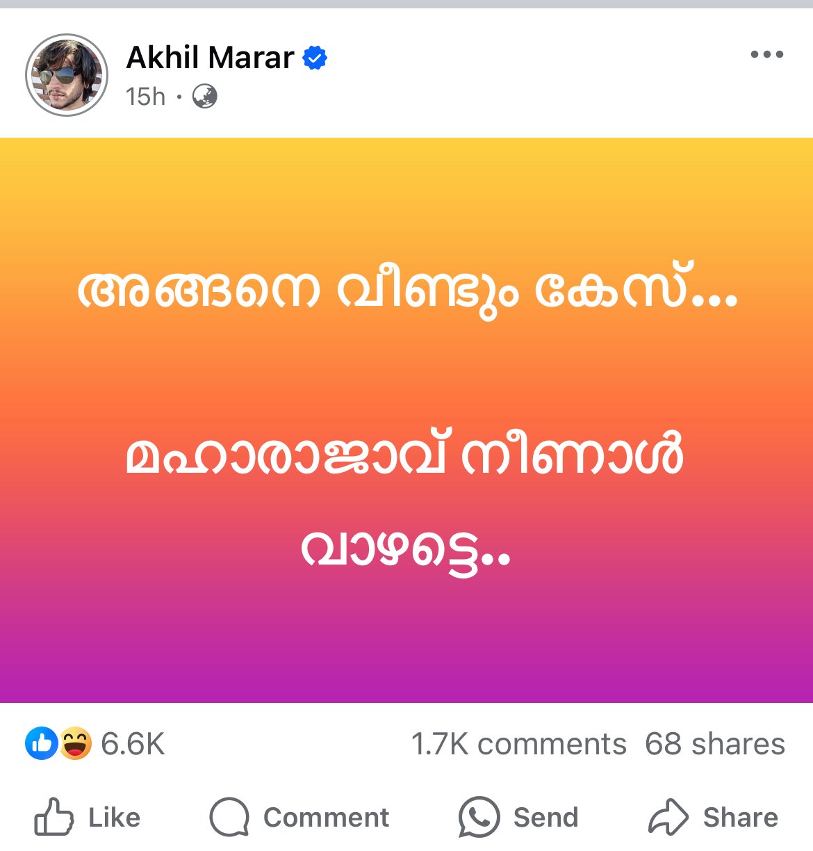 Bigg Boss star and director Akhil Marar had said that he will not give money to the Chief Minister’s relief fund and now a case has been registered against him. Infopark police has registered a case against Akhil in the incident. Akhil has shared a new post with the caption ‘Vindum Kess, long live the Maharaja’. Earlier, Akhil Marar had said through a Facebook post that he was not interested in giving money to the Chief Minister’s relief fund. Akhil’s announcement was that he would not give money to the relief fund and instead he would give his house to the affected people. Akhil’s promise was to give three houses. At first, the director said that he would give them a house in his country. Later Akhil had challenged the left supporters and said that he would give the house where they asked. Akhil Marar had said the other day that he had not told even one person not to donate to the relief fund. He will never stop anyone. But he also said that he has the right to decide to whom the money he gives goes.