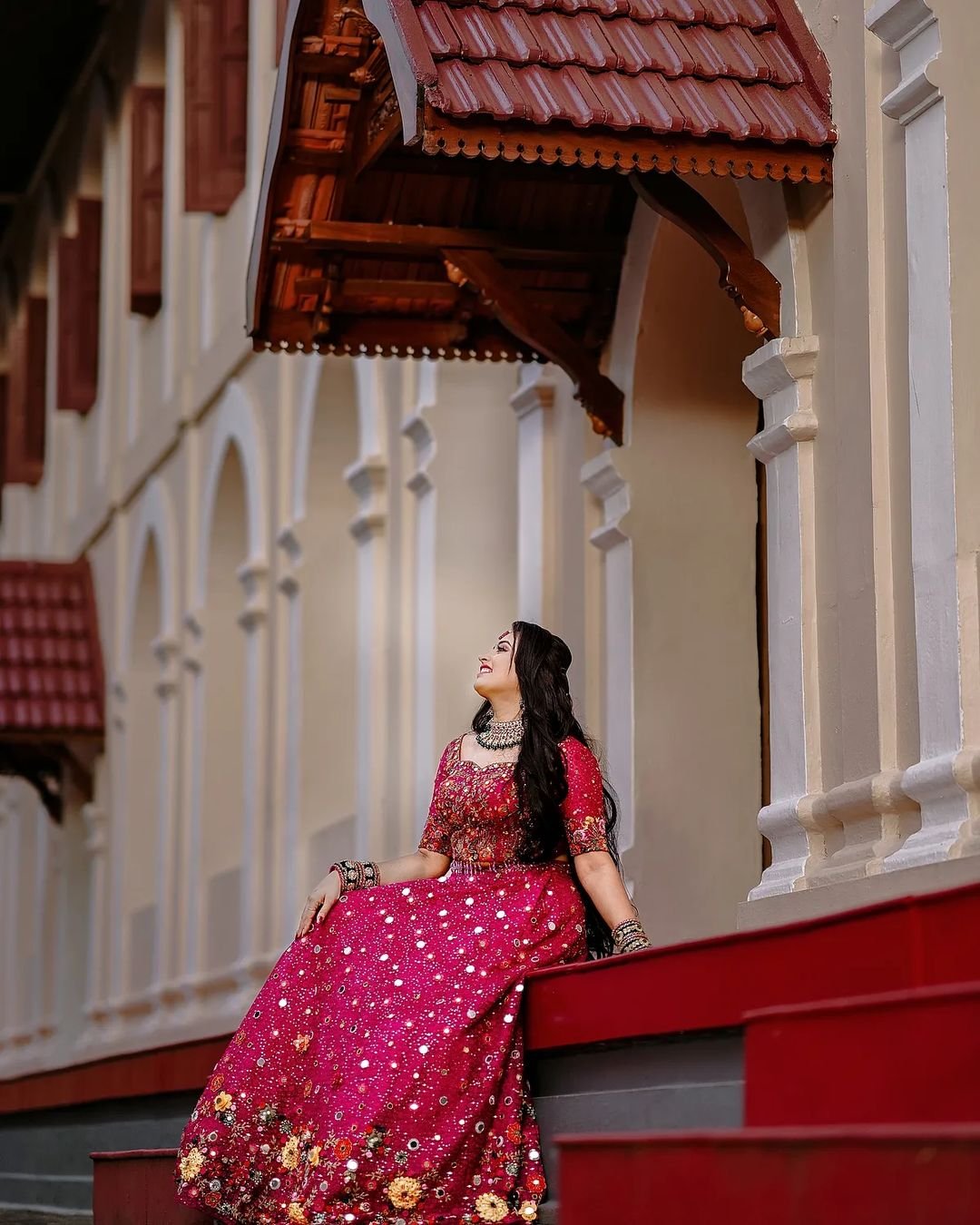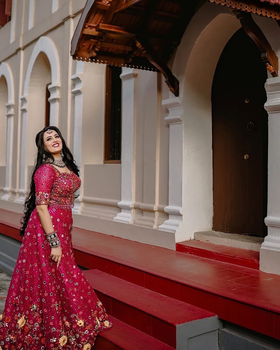 The actor chose a red silk saree as his mantra kodi. The audience says that the actress looked very beautiful in the saree. The actress wore a blouse with golden braid work. Although Arjun is a Malayali, he was born and brought up in Hyderabad. He works as an engineer.
