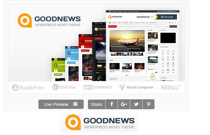 - 9. Goodnews – Responsive News/Magazine WordPress Theme 2018: