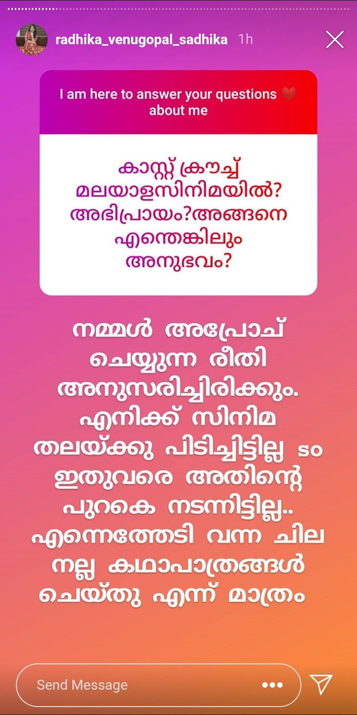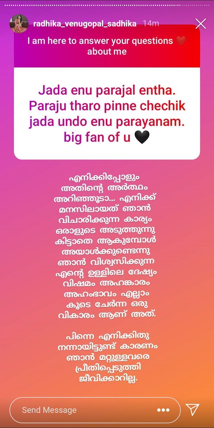 Images that can be shared on Instagram go viral in seconds. Sadhika Venugopal is currently conducting a question and answer session on Instagram.