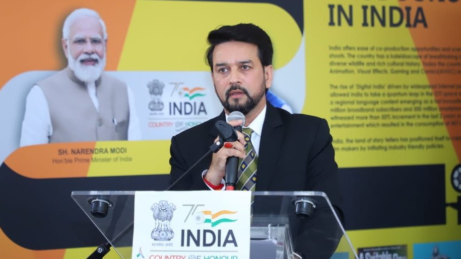 Union Minister for Information and Broadcasting Anurag Thakur today inaugurated the India Pavilion at Cannes Film Market ‘Marche du Film’. With an aim to make India a favorite destination for foreign film makers, Anurag Thakur today unveiled two schemes to incentivize shooting of foreign films and foreign co-productions with India.