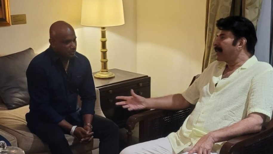 Sanath Jayasurya meets Mammootty in Sri Lanka; “You are a true superstar”