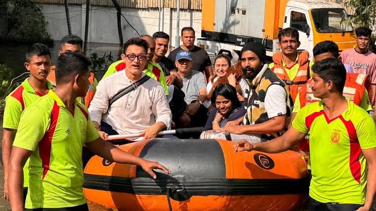 The fire force team rescued Aamir Khan this evening. The fire force team rescued Aamir Khan by boat.