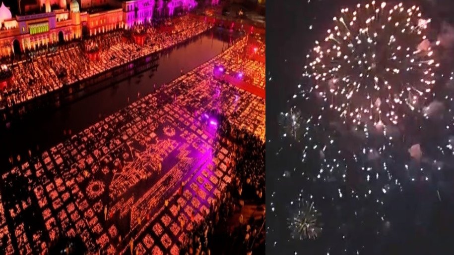 A spectacular fireworks show was displayed in Ayodhya as part of grand Deepotsav celebrations which was witnessed by Prime Minister Narendra Modi and CM Yogi Adityanath on the eve of Diwali.