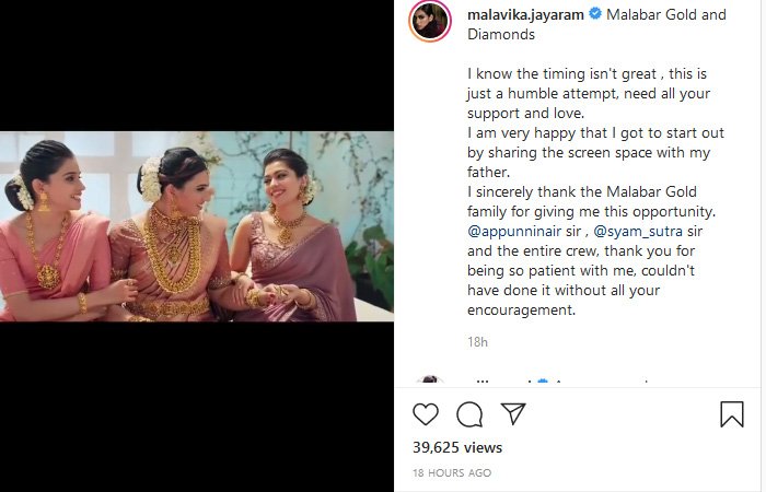 But the truth is … Malavika is playing a bride in a jewelery ad. Jayaram also stars in the ad film alongside Malavika