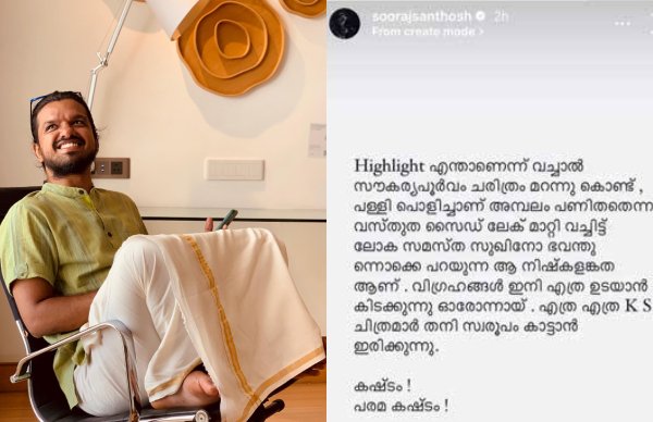 “The idols are about to be broken one by one. How many KS films are sitting to show their uniqueness. Sooraj wrote in his Instagram story, “Kashtam, Paramakashtam”. There is such a controversy in Kerala just a week before the inauguration of the Ram Temple.