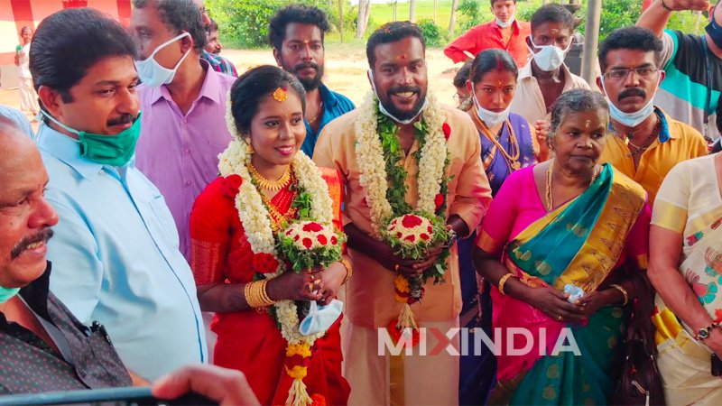 Malayalam Actor Manikandan Achari married to Anjali | Watch Video: Actor Manikandan Achari who entered the film industry through the movie Kammapattipadam tied the knot today. The bride is Anjali, a native of Thripunithura, Eranakulam. The wedding took place at Ayyambillikkavu temple with simple rituals due to the lock down. The bride and relatives wore masks to attend the ceremony as there were strict terms. View Manikandan Achari’s wedding video.