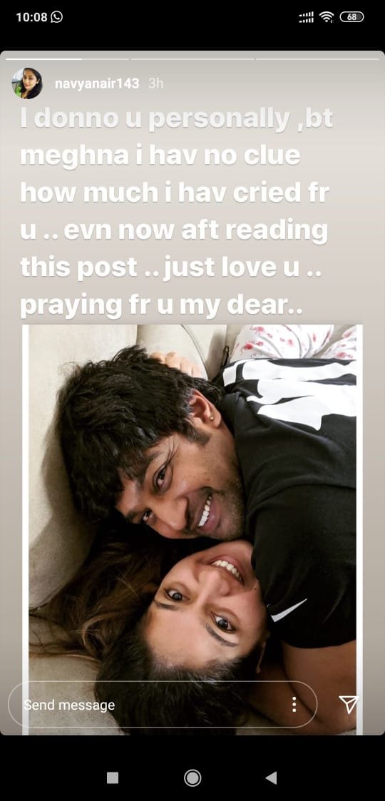 “Meghna, I do not know you personally .. but I do not know how much I cried for you .. Now I start crying again after seeing these pictures .. God bless you ..” – This is what Navya Nair wrote on Instagram.