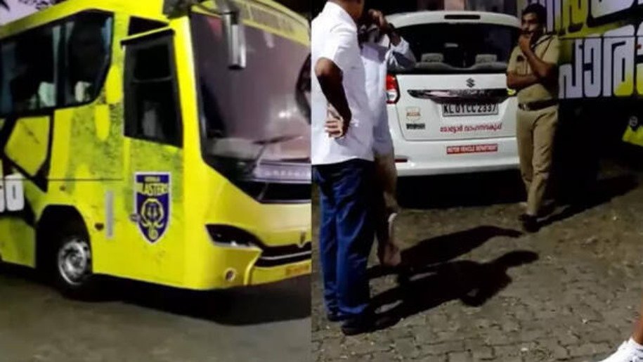 The Motor vehicle department had earlier pointed out that the stickers pasted on the team bus of Kerala Blasters as a serious lapse, but the bus authorities were not ready to solve the problems or meet the MVD officials, following which the action was taken today. The owners were given 14 days to fix the problems with the bus.