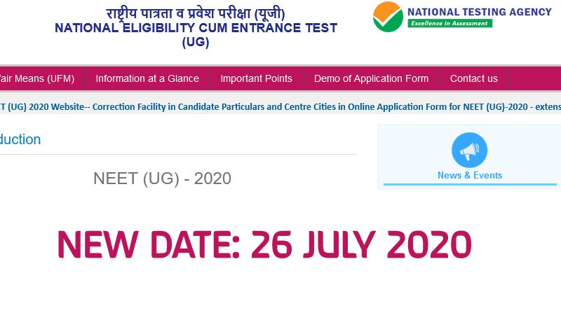 NEET exam 2020 update: The uncertainty due to covid anxiety and lockdown, JEE has announced an updated date for NEET exams. The all India medical entrance examination NEET 2020 will be held on July 26. The JEE (Main) Examination will be held from July 18 to 23. Union Minister for Human Resources Ramesh Pokriyal said that the JEE Advanced exam will be in August and the date will be announced later. The minister also said that a decision will be taken soon with regard to CBSE board exams.