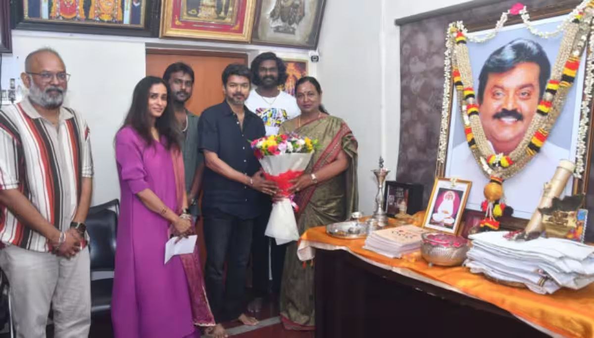 At the same time, there are reports that Dalapati is coming with a decisive move in politics. Vijaya has visited Vijayakanth’s family directly. Its pictures are now going viral online. The audience and political observers think that Vijay’s visit has a big political message in the event that his political entry has also been announced. But there is no politics behind this and it is said that the actor, director and producer went to Vijayakanth’s house and met his wife and daughter to thank him for including Vijayakanth’s scenes in this film.