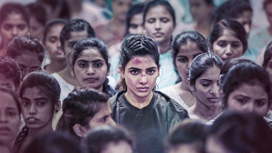 In the poster, Samantha is seen in intense look which also reveals her look in the film as she is dressed in a plain t-shirt and a hoodie with some injuries on her face, standing amidst a huge crowd of women.
