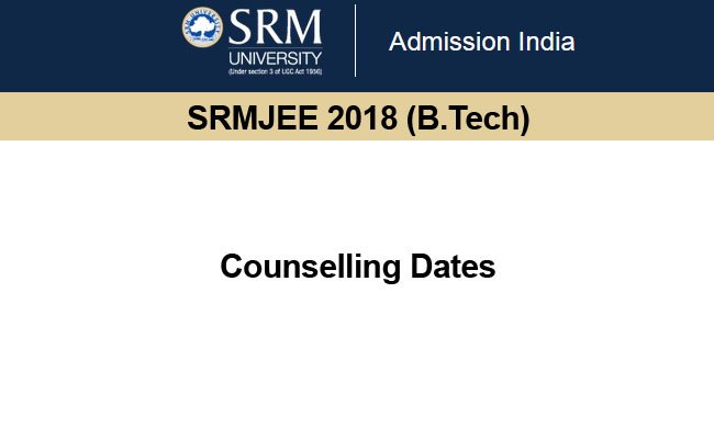 SRMJEEE 2018 Counselling Dates: The counseling dates for the SRMJEEE B.Tech admissions will be conducted as per the time schedule given below. The counselling consists of two parts, Offline and Online.