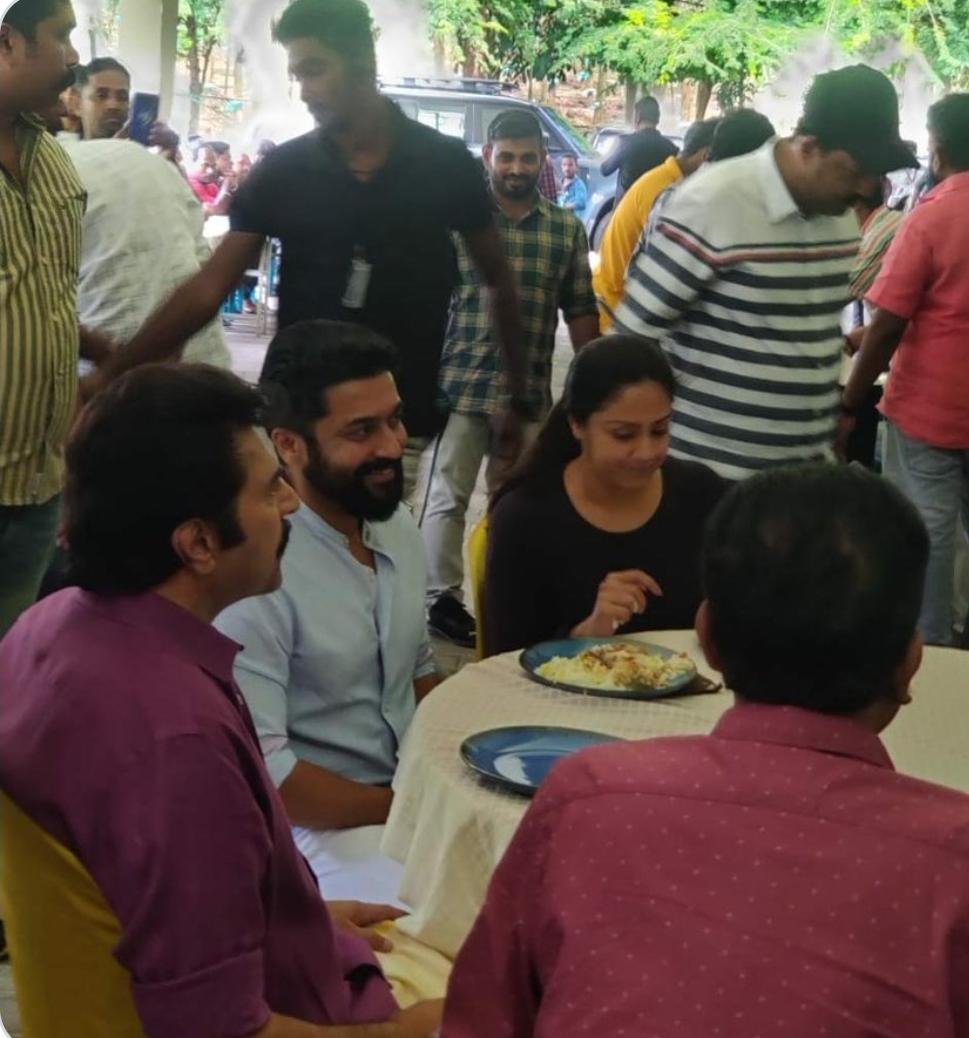 Recently, Suriya paid a visit to the sets of the film to meet his wife and Mammootty.