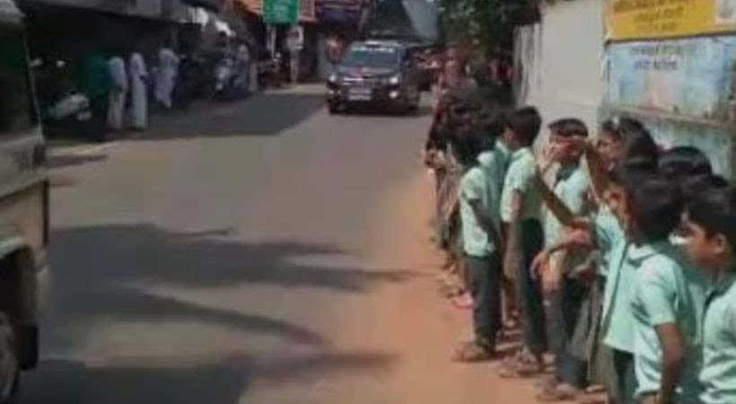 Children of Thalassery Champat LP School were kept in the sun. A video of children shouting slogans from the sun has surfaced as the Chief Minister and ministers pass by in a bus.