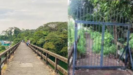 This bridge has been closed by the authorities of the irrigation department. This bridge starts from Uliannoor in Katungallur Panchayat and ends near UC College. It is a very long bridge. Four iron gates are placed at both ends of the bridge and at the two entrances on the liquor side. With this, the audience is worried that this area, which has become a tourist spot, will be there again.