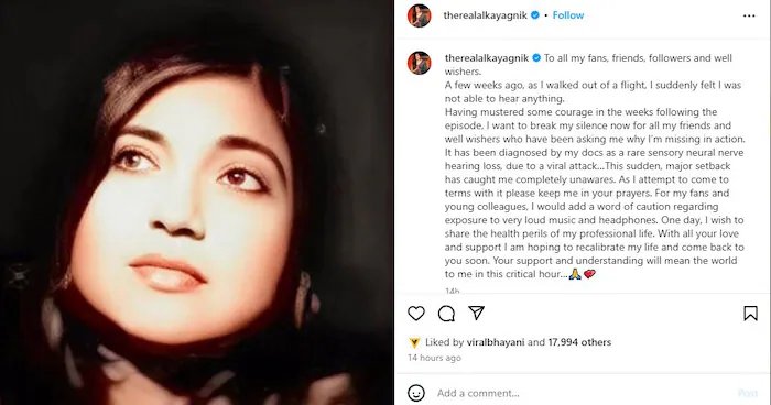 Singer Alka Yagnik made a very shocking statement a few days ago. They said that he has lost his hearing completely. They said that it was because of this that they had not been active on social media for some time. They said that he had lost his hearing due to a virus. Their words have shocked their fans in a big way.