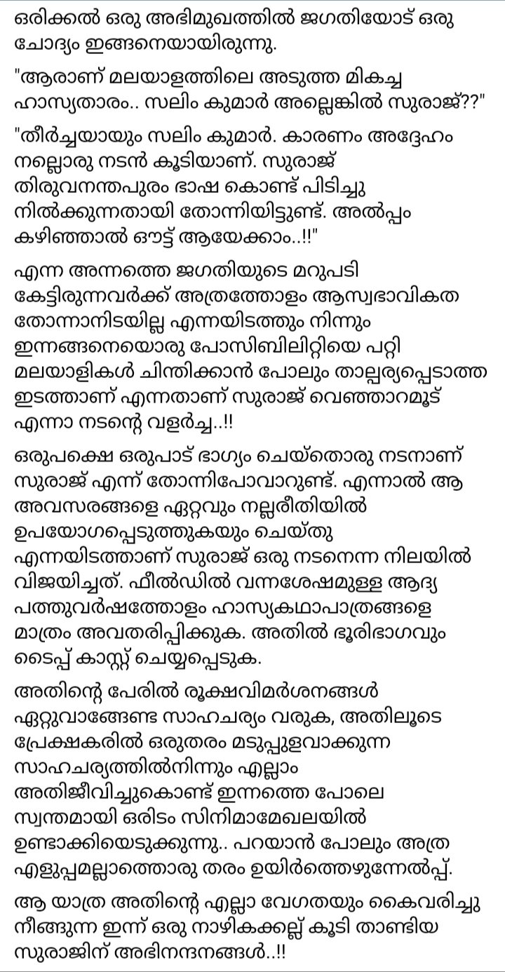 “Of course Salim Kumar. Because he is also a good actor. Suraj seems to be holding on to the Thiruvananthapuram language. It may be out after a while .. !! ”