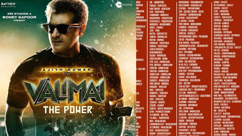 The much-awaited Ajith movie Valimai has 235 screens in Kerala alone! There has been a huge reservation for release day tickets everywhere. Valimai is expected to be one of the best action-thriller in India. Valimai is a movie directed by Vinod and produced by Zee Studios and is being brought to Kerala by E 4 Entertainment.