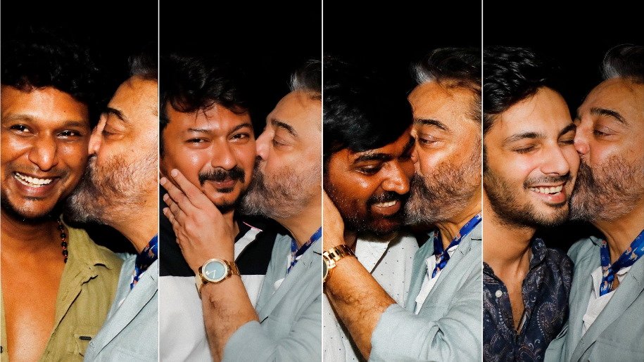 Lokesh Kanagaraj has shared a collage picture of Kamal Haasan giving a peck on everyone’s cheek at the party. “We all love you soo much @ikamalhaasan sir,” he wrote on Twitter.