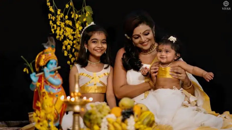 Anchor, actor and writer Aswathy Sreekanth is popular among the Kerala audience. She is also the most watched YouTuber from Kerala. On the occasion of Vishu festivities, beautiful pictures of Aswathy and her children- Padma and Kamala were clicked by Vivah weddings.