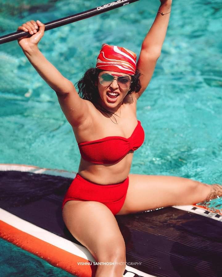 Rima looks very glamorous in a red bikini. Fans have celebrated this film.