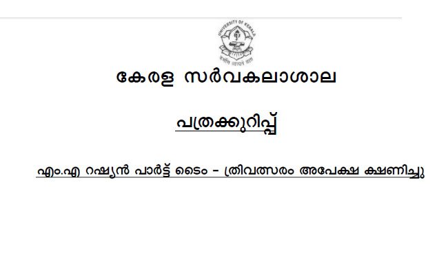 Kerala University MSW and MAHRM admission 2018 scheduled dates
