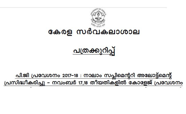 Kerala University published the fourth supplementary allotment for the PG Admission 2017.…
