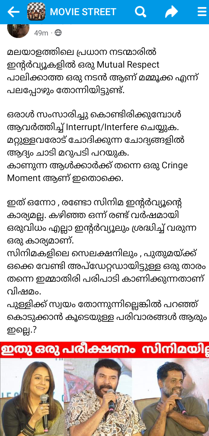 At the same time, the following comments agree with this post. Movie lovers also share the hope that Mammootty will correct this post after seeing it.