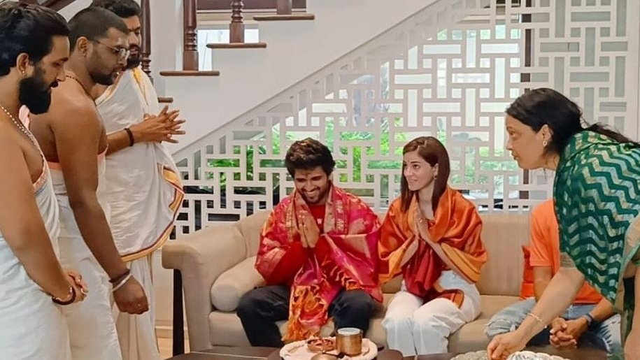 Ahead of Liger’s release this month, co-stars Vijay Deverakonda and Ananya Panday offered prayers at former’s Hyderabad residence.