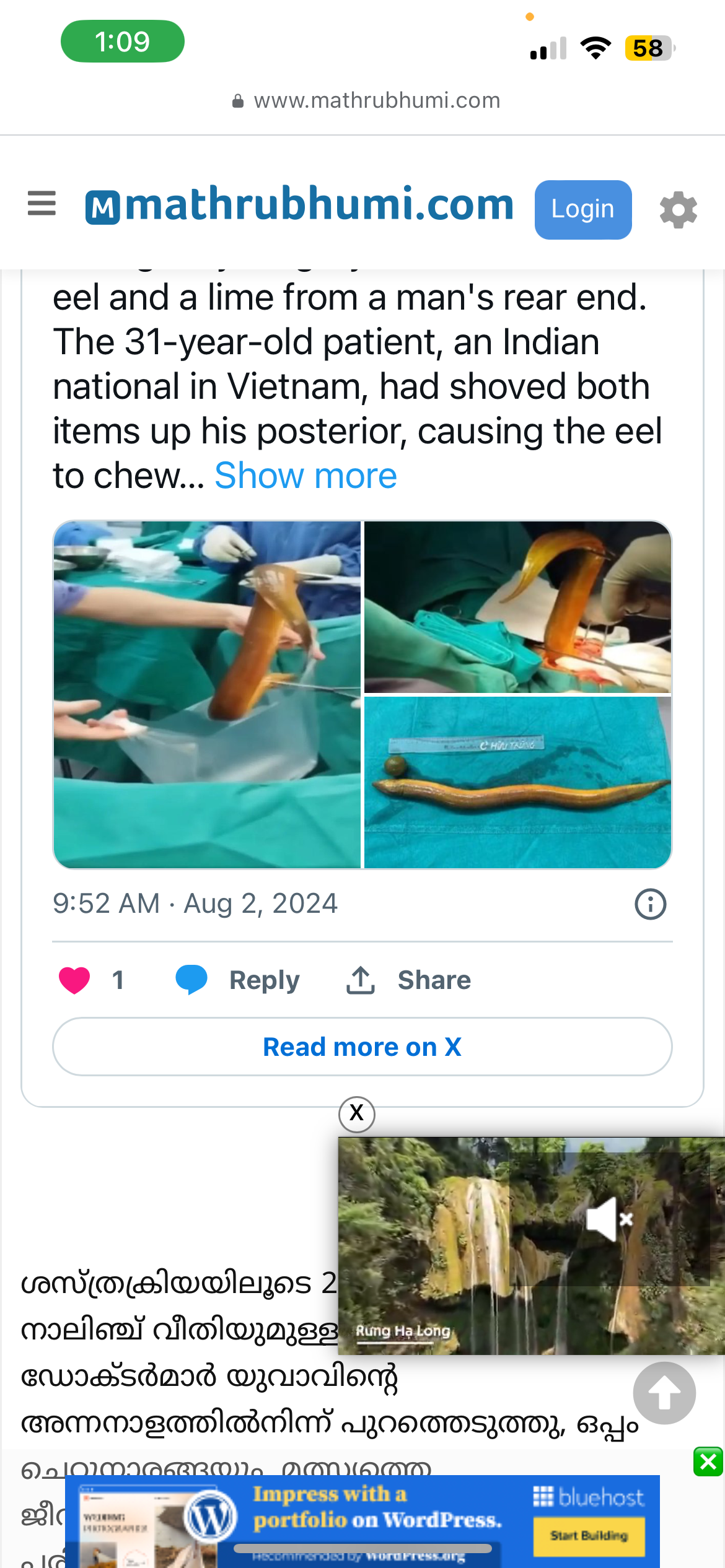 In Vietnam, the Indian man swallowed a live fish through the anus. After the tests including X-ray found the eel in the young man’s stomach, the doctors thought that it could be taken out through the anus. But another object was found in the anus to miscalculate them. It was a lemon that ‘got in the way’. Then the team of doctors came to the decision to perform emergency surgery.